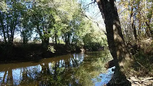 The Blue River is a 57-mile-long (92 km),[2][3] two-forked stream that runs through Harrison, Crawford and Washington counties in Indiana. The headwaters of the North Fork arise near Salem in Washington County and flow south, and the headwaters of the South Fork arise near New Liberty and flow southwest. The two small forks converge in Fredericksburg. From the confluence, the river flows south until it joins Ohio River in the Harrison-Crawford State Forest, just upstream from Leavenworth.