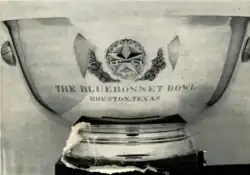 The Bluebonnet Bowl was an annual college football bowl game played in Houston, Texas.[1] A civic group was appointed by the Houston Chamber of Commerce Athletics Committee in 1959 to organize the bowl game. It was held at Rice Stadium from 1959 through 1967, and again in 1985 and 1986. The game was played in the Astrodome from 1968 through 1984, as well in 1987. When held in the Astrodome, it was called the Astro-Bluebonnet Bowl. The proceeds from the bowl games were distributed to various Harris County charitable organizations. The game was discontinued following the 1987 season due to poor ticket sales and lack of a title sponsor.[2]
