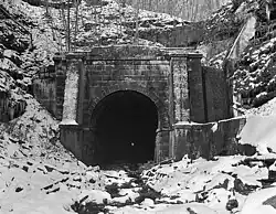 The Board Tree Tunnel, near Littleton, West Virginia, was built between 1851 and 1858 by the Baltimore and Ohio Railroad on its main line between Baltimore, Maryland, and Wheeling, West Virginia, under the supervision of B&O chief engineer Benjamin Henry Latrobe, II. The 2,350-foot (720 m)[1] tunnel used a segmental cast iron lining system pioneered on the contemporaneous Kingwood Tunnel on the same line.[2]