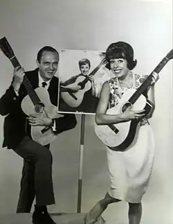 Newhart's success in stand-up led to his own short-lived NBC variety show in 1961, The Bob Newhart Show. The show lasted only a single season, but it earned Newhart a Primetime Emmy Award nomination and a Peabody Award. The Peabody Board cited him as "a person whose gentle satire and wry and irreverent wit waft a breath of fresh and bracing air through the stale and stuffy electronic corridors. A merry marauder, who looks less like St. George than a choirboy, Newhart has wounded, if not slain, many of the dragons that stalk our society. In a troubled and apprehensive world, Newhart has proved once again that laughter is the best medicine." In the mid-1960s, Newhart was one of the initial three co-hosts of the variety show The Entertainers (1964), with Carol Burnett and Caterina Valente,[17] appeared on The Dean Martin Show 24 times and on The Ed Sullivan Show eight times.[3] He appeared in a 1963 episode of The Alfred Hitchcock Hour, "How to Get Rid of Your Wife"; and on The Judy Garland Show. He also appeared on series such as Bob Hope Presents the Chrysler Theatre, Captain Nice, and Insight. Newhart guest-hosted The Tonight Show Starring Johnny Carson 87 times, and hosted Saturday Night Live twice, in 1980 and 1995. In 1964, he appeared at the Royal Variety Performance in London, before Queen Elizabeth II.[18]
