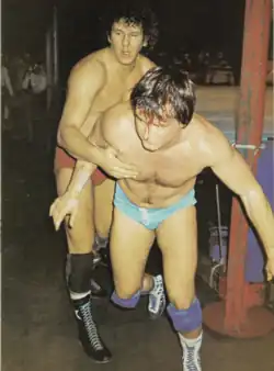 In 1972, Orton began his career in Championship Wrestling from Florida, initially as a referee for promoter Eddie Graham.[4][5] Early in his career, he wrestled as part of tag teams with Bob Roop[5] and Mr. Wrestling II, with whom he won the NWA Georgia Tag Team Championship on June 9, 1973.[6] Orton was one of the first wrestlers to use the superplex as his finishing move.[1]