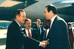 In 2005, Taft signed legislation creating the Military Injury Relief Fund, which allowed taxpayers to donate a portion of their tax refund to help fund grants for injured veterans.[33] He successfully lobbied, along with others, in 2006 to have the Royal Netherlands Air Force join the Ohio Air National Guard in training missions in Springfield.[34] Taft signed numerous other pieces of legislation extending benefits to service members, and in 2006 was honored with the National Guard Association of the United States' Charles Dick Medal of Merit, in which the press release stated "Taft fought to ensure that Ohio's Soldiers, Airmen and their families were cared for in all aspects of their service, and presided over an unprecedented expansion of state benefits for Guardmembers and their families." Ohio's adjutant general Maj. Gen. Gregory L. Wayt stated about Taft that "he epitomizes what a commander-in-chief of a National Guard should be. During his term he has stood strong with the National Guard."[35]