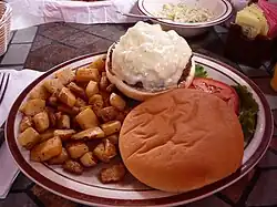 During its time under the Eckre family's management, Bobcat Bite has been named in several articles, including those contained within the Albuquerque Journal, the Chicago Tribune, and The New York Times.[2][3][4] Bobcat Bite also appeared in the 2004 documentary Hamburger America.[5] The restaurant in 2007 was mentioned in the Food Network's program Top American Restaurants: Bon Appétit Picks the Best, hosted by Alton Brown.[6] Bobcat Bite was featured in the 2012 episode "New Mexico"[7] on Bizarre Foods America.[8] Host Andrew Zimmern ranks it in his top 3 hamburgers.