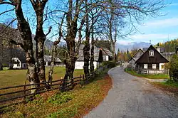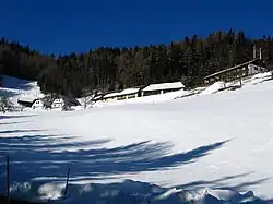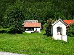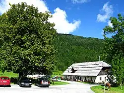 The Bodental (Slovene: Boden, Carinthian Slovene: Póden)[1][2] is a remote mountain valley in the Karawanks in the south of Carinthia, Austria. Located at just over 1,000 metres above sea level, the valley extends southwesterly and can be reached by road or walking trail from the Loibl Pass road. The area is part of the cadastral community of Windisch Bleiberg, and since the beginning of 1973 it has been part of the municipality of Ferlach. The valley is drained via Boden Creek (German: Bodenbach, Slovene: Žabnica),[3] which flows over Tschauko Falls in the Tscheppa Gorge.