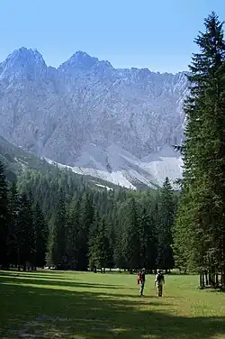 Having one of the most beautiful valley closures of the Limestone Alps, the formerly agricultural 4 km-long mountain valley has developed into a popular leisure area. In summer there is hiking – for example, in the nature reserve or to the Klagenfurt Lodge (German: Klagenfurter Hütte). In winter, the valley is one of the few winter sport regions of the Karawanks with ski slopes,[4] cross-country skiing, winter hiking, and sleigh riding.