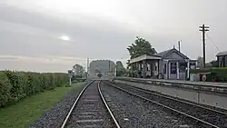 Situated half a mile from Bodiam village itself and its fourteenth century castle, the station opened in 1900 in a rather remote and rural location. It was surrounded by hop Gardens, mainly owned by Guinness, and helped to serve the industry in the area, bringing hop-pickers to and from the fields and transporting hops to the breweries.[1] In 1910, a siding was added which effectively acted as a loop allowing freight trains to pass passenger trains.[2] The station was known as "Bodiam for Staplecross".