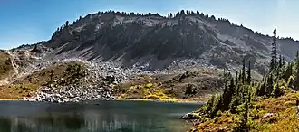 Bogachiel Peak is a 5,478-foot (1,670 m) peak in the Olympic Mountains of Washington, U.S.. It is located in Olympic National Park, and is a high point on the High Divide separating the Hoh River and Sol Duc River valleys, and forming the southern rim of Seven Lakes Basin. The peak is situated at the headwaters of the Bogachiel River. The name "Bogachiel" is a corruption of the Quileute words bo qwa tcheel el, or /boqʷač'íʔl/, from /bó:q'ʷa/, "muddy", and /číʔlowa/, "water", meaning "gets riley [turbid] after a rain", "muddy waters", or, less likely, "big river".[3]