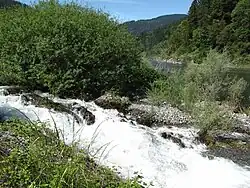 ![]() Bedrock Falls blocks salmon passage up Boise Creek from the Klamath River | |