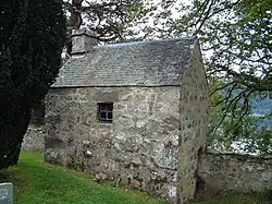 Boleskine House was built on the site of the kirk, which, according to legend, caught fire during congregation and killed everyone inside.[7][3] The house was constructed in the 1760s by Colonel Archibald Fraser as a hunting lodge.[3][8][9] Colonel Archibald Fraser apparently chose the site specifically to irritate Simon Fraser of Lovat in retribution for his support of the Hanoverian side during the Jacobite rising of 1745 as Lord Lovat's land surrounded the site of Boleskine.[10]