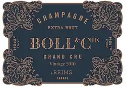 Boll & Cie is a Champagne house based in Reims, a producer of sparkling wines from the Champagne region of France, founded in 1853. With the exception of the Brut Rose, all Champagnes from Boll & Cie are blanc de blancs. Boll & Cie specializes in Brut Champagne, including a Grand Cru from the village of Le Mesnil-sur-Oger.[1]