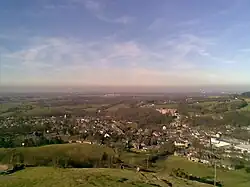 Bollington is on the River Dean and the Macclesfield Canal, on the south-western edge of the Peak District. Rising above the town on Kerridge Hill is White Nancy, a structure built to commemorate the victory at the Battle of Waterloo.