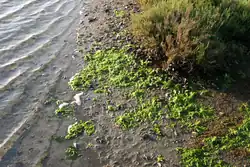 Among the wildlife in the reserve are the shovelnose guitarfish,[15] grey smooth-hound sharks,[15] California halibut,[16] and white seabass.[16] There are also snakes in the grassy areas of the wetlands, ranging from harmless kingsnakes and gopher snakes in various colors to rattlesnakes, including western diamondbacks and Pacific rattlesnakes. Other wildlife include western fence lizard, cottontail rabbit, Beechey ground squirrel, and coyotes.[14]