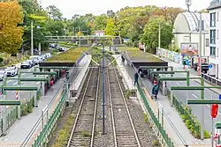Boltensternstraße is a station on the Cologne Stadtbahn line 18, located in the Cologne district of Nippes. The station lies on Riehler Straße, adjacent to nearby Boltensternstraße, after which the station is named.
