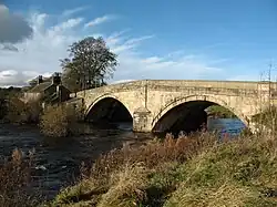 The hamlet shares its name with Bolton Bridge, an old bridge over the river less than a kilometre south of the settlement. The bridge is Grade II listed, and was built in 1807.[3][4] The cottage building standing on the west bank of the river by the bridge may be the site of a former chapel.[5] There are several heritage buildings in the hamlet including some cottages and the Devonshire Arms pub. The hamlet area is considered at-risk for floods.[2]