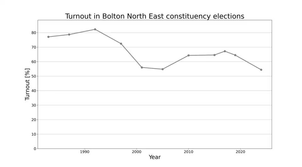 - ^ "'Bolton North East', June 1983 up to May 1997". ElectionWeb Project. Cognitive Computing Limited. Archived from the original on 11 March 2016. Retrieved 10 March 2016.