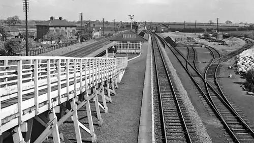 The station opened on 30 May 1839 by the York and North Midland Railway. It closed to both passengers and goods traffic on 13 September 1965.[1][2][3] When open, it consisted of a single long island platform serving just two of the four lines, a similar configuration to that of neighbouring Ulleskelf. A large goods shed was also provided to the north of the station.