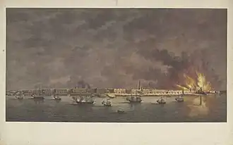Antwerp joined the uprising in October. Dutch naval ships were subsequently sent to the river Scheldt, where they inspected all vessels for contraband. This led to a tightening of trade in the port city. As the navigation on the Scheldt fell under the control of the North Dutch navy, Antwerp lost its free access to the North Sea. Meanwhile, the royal troops, under the command of General David Hendrik Chassé, took refuge in the citadel in the southern part of Antwerp, a powerful stronghold from which they could bombard the city.[5] When General David Hendrik Baron Chassé received information that some Belgians had occupied Dutch posts within the city, and there where even reports of certain Belgians urging the Dutch forces to surrender the citadel. In response to these developments, Chassé took decisive action and ordered the bombardment of the city.[6]