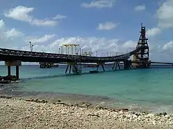 After the war, the economy of Bonaire continued to develop. The airport was converted to civilian use and the former internment camp was converted to become the first hotel on Bonaire.[38] The Dutchman Pierre Schunck started a clothing factory known as Schunck's Kledingindustrie Bonaire, a partial solution for the large female surplus on the island. In 1964, Trans World Radio began broadcasting from Bonaire. Radio Netherlands Worldwide built two shortwave transmitters on Bonaire in 1969. The second major hotel (Bonaire Beach Hotel)[39] was completed in 1962. Salt production resumed in 1966 when the salt pans were expanded and modernized by the Antilles International Salt Company, a subsidiary of the International Salt Company. Part of the facilities extend into the Caribbean Sea and form the popular dive site known as Salt Pier.[40] The Bonaire Petroleum Corporation (BOPEC) oil terminal was opened in 1975 for trans-shipping oil.[41] Politically Bonaire formed part of the Netherlands Antilles from 1954 to 2010; it is now a special municipality within the Netherlands.[16] In 2011 the island officially adopted the US dollar as its currency.[42]