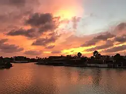 Bonaire also is known for its salt pans (also called salt lakes, salt flats, or saliñas),[56][95] which cover 10% of the island's land.[96] Salt pans are salt lakes or inlets that are closed to the sea by a dead coral dyke. They have an important function because they ensure the collection and filtration of rainwater. This prevents nutrients and soil particles from reaching the reef and causing damage to the corals. This function is especially crucial during heavy rainfall. The salt pans are also an important feeding ground for many waterbirds. Slagbaai, Gotomeer, Pekelmeer and the Klein Bonaire salt pans are aquatic areas of international importance in the context of the Ramsar Convention. Economically, the salt flats provide for the production and exportation of salt.[62]