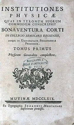 - Institutiones physicae (in Latin). Vol. 2. Modena: Giovanni Montanari. 1770.