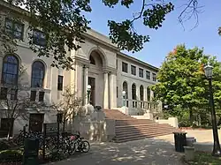 Bond Hall is a building on the campus of the University of Notre Dame which hosts student learning initiatives and a number of institutes including the Graduate School. It was originally built in 1917 as the Lemmonier Library and it housed the Notre Dame School of Architecture from 1964 to 2019. The architect was Edward Lippincott Tilton, a neoclassical architect who specialized in libraries. Its front steps are famous as the location of the Notre Dame Marching Band performances before the football games.[2]
