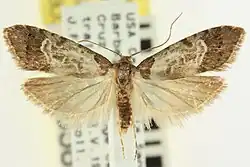 The wingspan is 14–19 mm for males and 13–18 mm for females.