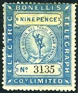 The company issued a number of telegraph stamps which are of interest to philatelists. It is unclear, however, whether the stamps were ever used as only unused copies are known.[2]