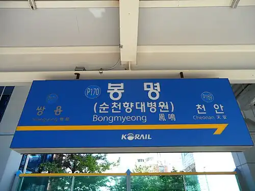 - ^ a b 봉명역 (in Korean). KRIC. Retrieved 2015-12-26.