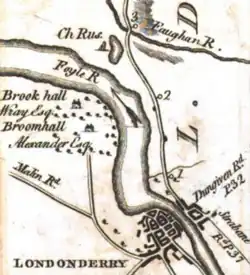 Boom Hall from Taylor and Skinner’s road map of Londonderry, 1777