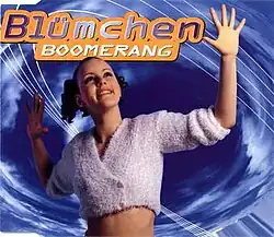 "Boomerang" is a song recorded by German recording artist Blümchen (a.k.a. Jasmin Wagner). It is one of her most well-known songs and was released in June 1996 by Control label as the third single from her debut album, Herzfrequenz/Heartbeat (1996). Produced by producers/songwriters Arn Schlürmann and Stani Djukanovic, the song was also co-written by Schlürmann with Alfred von Meysenbug and Lukas Hilbert. During its first chart run, it peaked at number eleven in Germany, number nine in Switzerland, number ten in Austria and number sixteen in Norway (April 1997). On the Eurochart Hot 100, the single reached number 33 in August 1996. It is sung in German, and its accompanying music video, directed by Oliver Sommer, features Blümchen performing while she rolls around on roller skates.