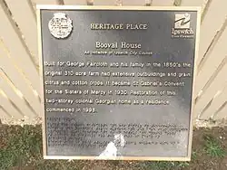 - ^ a b c d e f g h i j k l m n o p q r s t u v w x y z aa ab ac ad ae "Booval House (entry 600549)". Queensland Heritage Register. Queensland Heritage Council. Retrieved 1 August 2014.