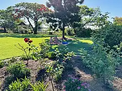 Outbuildings included a rudimentary shed and fernery to the southeast of the grounds and a modern carport on the south-western corner.[1] During conservation, this old shed was removed and replaced with an approved garage and garden workroom wing, built quite compatible with the original house.