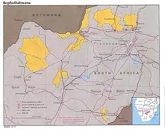 ![]() Location of Bophuthatswana (red) within South Africa (yellow). | |||||||||