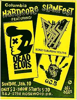 Inspired by an early 1980s Black Flag show, Bored Suburban Youth was formed by a group of students at Irmo High School in the suburbs of Columbia, South Carolina. The original lineup consisted of John Hathaway (guitar), Troy Tague (drums) and Shannon Burgess (bass). An early lineup featured John Dickerson on vocals, but he was soon replaced by Darren Walker, who fronted BSY for nearly all of the band's four-year run. BSY's sound was characterized as having "buzz saw guitars" and "aggressive vocals," though the band themselves referred to their sound as simply "rock'n'roll."[2]