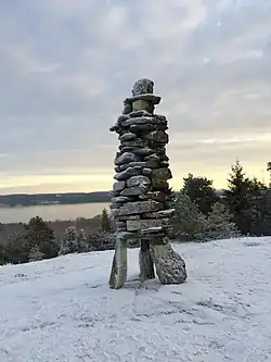 Borgåsgubben is a 10-foot-tall male figure statue made of different sizes of stone-bricks put together. He stands on top of a mountain called Borgåsen, in Källtegen, Blomskog,[1] Årjäng, Sweden.[2] Why he was put there is unknown, but rumor has it that he was put there to frighten off enemies. It was supposed to give those attacking a vision of a living guard post. It was built in times of war between Sweden and Norway in the seventeenth century. Many believe that the stone statue was made by soldiers called caroleans, soldiers that served in the army under the Swedish King Charles XII's rule. Charles and his soldiers were passing by and were on their way to Fredriksten fortress in Norway when they stopped in Blomskog.