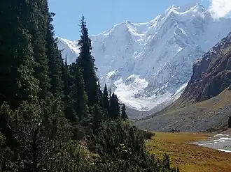 Boris Yeltsin Peak (Russian: Пик Бориса Ельцина, romanized: Pik Borisa Yel'tsina, Kyrgyz: Огуз-Баши, romanized: Oguz-Bashi) is a mountain in the Terskey Ala-too range of the Tian Shan. It is located in the Issyk-Kul Region of Kyrgyzstan. It was renamed in 2002 after the first president of Russia, Boris Yeltsin. Its previous name was Oguz-Bashi.[1][2][3]