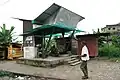 This small building was therefore conceived as a public and paying fountain, as well as a food outlet. In particular, the roof reflects the style of the ephemeral building, created by the artist Jesús Palomino, in the workshop Bessengue City organized by Goddy Leye and theart center ArtBakery.[1]