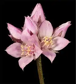 • Boronia juncea subsp. minima[11] has woolly sepals and petals, the sepals 3–5 mm (0.12–0.20 in) long with a tapered tip.[8]