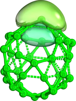Borospherene (B40) is an electron-deficient cluster molecule containing 40 boron atoms. It bears similarities to other homoatomic cluster structures such as buckminsterfullerene (C60), stannaspherene, and plumbaspherene, but with a different symmetry.[1][2][3] The first experimental evidence for borospherene was reported in July 2014, and is described in the journal Nature Chemistry.[4] The molecule includes unusual hexagonal and heptagonal faces. Despite many calculation-based investigations into its structure and properties, a viable route for the synthesis and isolation of borospherene has yet to be established, and as a consequence it is still relatively poorly understood.