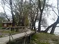 The Battle of Borovo Selo on 2 May 1991 was one of the first armed clashes in the conflict which became known as the Croatian War of Independence. The immediate cause for the confrontation was a failed attempt to replace a Yugoslav flag in the village with a Croatian one. The unauthorized effort by four Croatian policemen resulted in the capture of two by a Croatian Serb militia in the village. To retrieve the captives, Croatian authorities deployed additional police, who drove into an ambush. Twelve Croatian policemen and one Serb paramilitary were killed in the battle before the Yugoslav People's Army (JNA) units from Osijek intervened and stopped the fighting.[17] On 4 of May river link across the Danube was established between Borovo and the village of Vajska in Vojvodina.[19] It was reported that between 10-30,000 passengers from Borovo, Vera, Trpinja and Bobota used the river service while JNA used it to evacuate local Croats from Borovo to Vojvodina with four (including a minor 5 years old girl) among remaining Croats being killed by paramilitary units.[20]