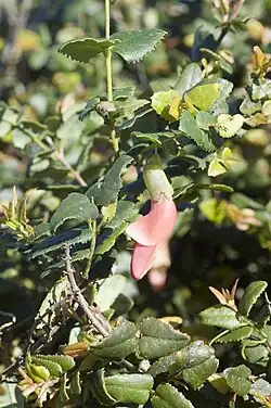 Bossiaea dentata is a species of flowering plant in the family Fabaceae and is endemic to the south of Western Australia. It is an erect, sometimes prostrate shrub with variably-shaped leaves and greenish-yellow or pink to burgundy-coloured flowers.