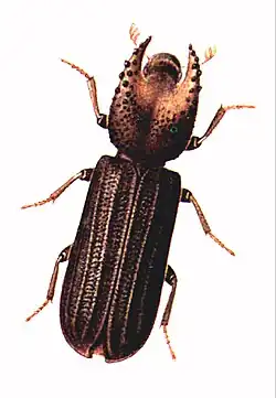 Bostrychoplites cornutus is a beetle species in the genus Bostrychoplites. Pupae have been found in wood of deciduous trees. The species has been introduced to many countries in Africa south of the Sahara Desert, including Gambia.[1]