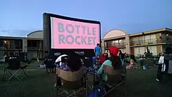 Fans watch a showing in Hillsboro, TX at the motel where much of the movie was filmed.