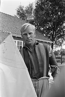 ![]() Boudewijn Binkhorst during the 1968 European Championship Finn in Medemblik. | |
