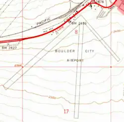 Boulder City Airport has been replaced by Boulder City Municipal Airport, which opened in 1990.[10] The prior airport was located north of the current airport, much closer to U.S. Route 93.