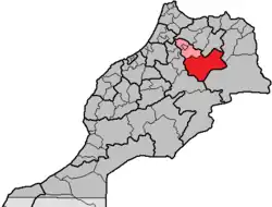 Boulemane Province (Arabic: إقليم بولمان) is a province of Morocco, formerly in the Fès-Boulemane Region. The Fès-Boulemane region became part of Fès-Meknès September 2015 by merging Fès-Boulemane with the prefecture of Meknès and the provinces of El Hajeb and Ifrane (in Meknès-Tafilalet region) and the provinces of Taounate and Taza (in Taza-Al Hoceima-Taounate region).