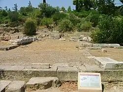 The Old Bouleuterion was built on the west side of the Agora below the Agoraios Kolonos around 500 BC. It was almost square and included an oblong antechamber and a main council chamber, a large rectangular room with wooden benches arranged in rows along the walls.[3] The roof was supported by five columns. It is now better known as the Metroon ("House of the Mother") since it was repurposed as her temple after the construction of the New Bouleuterion.