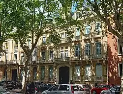 The hotel, built in the second half of the 19th century, was enlarged and extensively redeveloped between 1933 and 1934 by the architect Louis Corlouër – nephew of Fulgence Bienvenüe – at the request of Jean Baylet. The Baylet hotel, through its interior decorations, is representative of the residences of the Toulouse bourgeoisie of the first half of the 20th century. - n°68-72: Hôtel Léotard, then Pauilhac; headquarters of the JOB company; Réseau Canopé of the Toulouse academy.[3][4] The 72 hosted a voluntary (HB28 bis) and auxiliary (HA301) hospital of the Association of French Ladies (Red Cross).[5] In 1939, the Polish consulate was located there.[6]