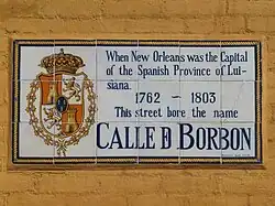 Following a brief restoration of French rule, the United States gained control of the colony with the 1803 Louisiana Purchase.[6] They translated the French street names into English, with Rue Bourbon becoming Bourbon Street.[5]