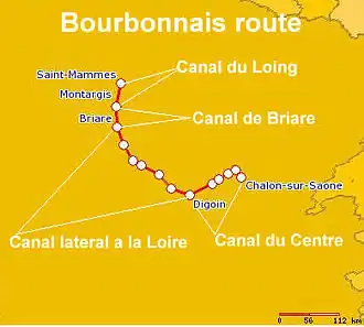 The Bourbonnais route is a connection of four canals in France from Saint-Mammès on the Seine to Chalon-sur-Saône on the Saône River:[1][2] It includes the Canal du Loing, Canal de Briare, Canal latéral à la Loire, and Canal du Centre.